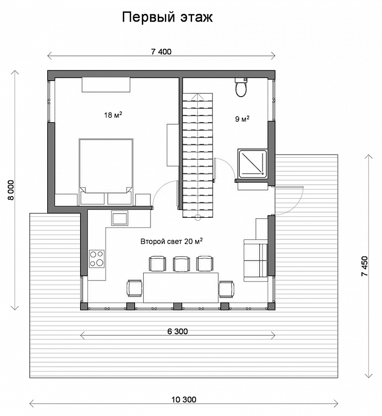Отличный дом для отдыха в любое время года. Пятно застройки - минимальное, в то же время, почти 80 кв. м. площади – это всё, что необходимо для размещения комнат для релаксации и активной жизни. Для удобства запланированы два входа с противоположных сторон. Особый шарм придают дому панорамное остекление и уютная терраса, на которой приятно проводить время с семьей и близкими.